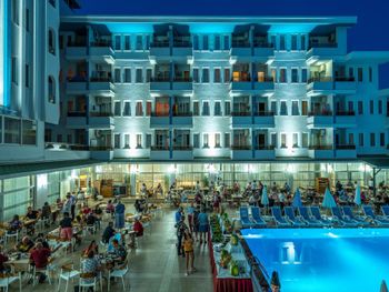 Не понравилось: 1. Долгое заселение 2. Некомпетентность персонала: доказывали что тип размещения в путевке DBL означает 2 раздельные кровати, куда нас с мужем и поселили, хотя во всем мире известно что DBL это одна большая а TWIN разные. 5 дней добивались переселения. 3. Очень жёсткие матрасы! Невозможно выспаться, болела и спина и шея. 4. Мечеть будит по ночам очень громкими песнями 5. До моря прилично ходить, 800 м, обратно ещё и в гору ( но есть автобус на пляж, можно под него подстраиваться). 6. Для еды отводится 2 часа, в которые должен покушать весь отель, и это просто капец, таких очередей я просто не видела раньше, на ужин особенно. Блюда в ресторане выставлены кучей, поэтому когда один человек накладывает салат, остальные 3-4 чашки недоступны. Такая же ситуация с чаем и кофе, все находится в одном пятачке из за этого, тот кто наливает чай, мешает тому кто наливает кофе. 7. Отсутствие вай фая в номерах. 8. Плохая шумоизоляция. Причем мы слышали не соседей а коридор. Дверь хоть и массивная имеет приличную щель внизу, вы слышите всех кто ходит по коридору.9. Большой минус в отеле нет бесплатных весов для взвешивания чемоданом. !!! Это стоит 1 евро, за них весы работают 10-15 секунд. К нас был ограниченный багаж 10 кг приходилось перекладывать вещи, и с этими весами мы могли разориться. Не иметь бесплатных весов в отеле это жесть. 10. Платные лежака и зонтики на пляже.