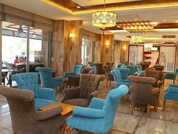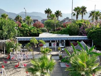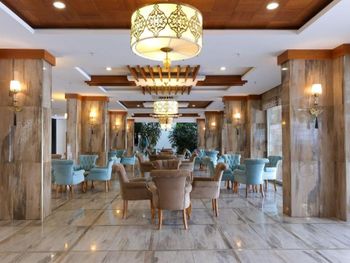 В ресторане отеля для гостей сервируют «шведский стол», состоящий из фирменных блюд средиземноморской кухни провинции Анталья, а также блюд интернациональной кухни. В баре у бассейна можно заказать экзотические напитки. После ужина группа артистов исполняет традиционную музыку и танцы этого региона.