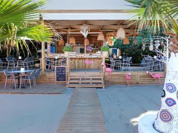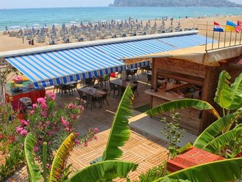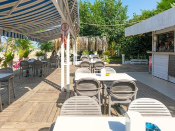 На пляже кроме воды и лепёшек, все за доп. плату. Вход в море плохой, острые камни.