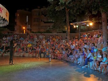 Анимация в 10 вечера разнообразная. Для детей есть аниматоры, но часто вечером платно дети делают картинки из цветного песка.