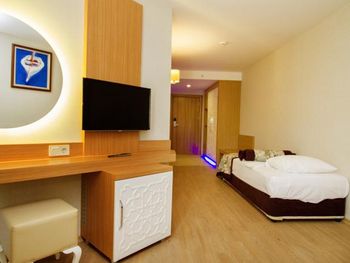 Отдыхали с 18 по 24 октября, номер нормальный, еда приличная, в баре ничего приличного нет- только сухое вино, нет ни коктейлей, ни мартини. Для мужа тоже не нашлось приличного напитка - все разбавленное и маленькими порциями (30 гр). Меня порадовал айран в постоянно циркулирующем автомате. Ребёнка-- горячий шоколад.