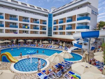 Отдыхал с семьей в начале июня. Честно сказать я готовил себя на худшее, но оказалось все не так. Начну сначала. Ресепшн заселил нас с ожиданием хотя я был уверен что были готовы номера, заполняемость отеля на тот период не был высоким. Пришлось подождать в ресепшионе пару часов, Девушку в ресепшионе обязательно следует поменять, человек был настроен на общение только с туристами из России, немного грубоватая. А так персонал был очень дружелюбным и отзывчивым. Кормили не плохо, но говядины не было, Из мяса рыба и курица. Голодными не оставались, Чистота отеля была на высоком уровне. Аниматоры лезли из кожи вон, чтоб украсить наше прибывание в этом отеле. И у них это получалось. Отдельное спасибо аниматорам Мураду, Юле и Жене. Просто рекомендую почаще менять программу).