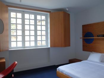 Расположение отличное, рядом все необходимые кафе и культурные центры. Сам отель очень красивый, тихое место. Здорово, что можно было посмотреть кино на проекторе и послушать музыку с пластинок. Есть небольшой мини-бар в холодильнике, что приятно и можно не идти в магазин за напитками.