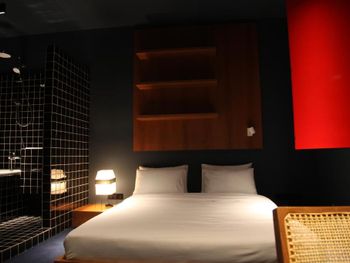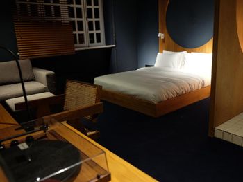 Стильные номера, в номере был виниловый проигрыватель и проектор. Отель располагается на территории модного кафе, но при этом шума не слышно. Кафе тоже советую
