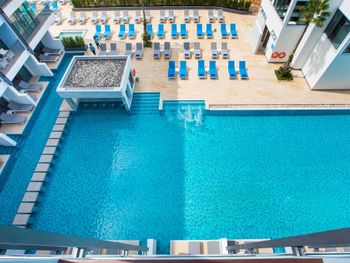 Бассейн чистый , теплый. Но чуть был запах химии , номер большой просторный , отличный , сумочка для пляжа имеется тоже плюс . Месторасположение хорошое все рядом , 7/11 , магазины бары ,