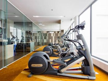 На крыше бассейн с лежаками и мини спортзальчиком (кардио)