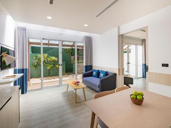 Бронировали большой номер в основном здании с выходом к бассейну, заселили в номер в здании в 200-х метрах, совершенно несуразном, старом , темном и огромным номере. Пошли опять в лобби , сказали «что бронировали, то и дали. А если картинка не соответствует, то они виноваты , пишите в booking. “ номер все таки поменяли. При наличии кухни полное отсутствие кухонной утвари. удалось выпросить только столовые приборы и тарелки. Короче, перед тем как платить и заселяться, смотрите номер.