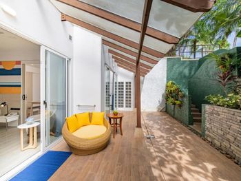 Большая терраса, прекрасный вид с нее. Но - терраса при заезде была очень грязной, а сам номер довольно старый и местами уставший. И очень много комаров. Локация очень тихая, хотя звукоизоляции в номере нет совсем и редкие шумы слышно было очень хорошо. В целом впечатления остались положительные, но не столько от апартаментов (этот пентхаус был люксовый лет 5-10 назад, сейчас отчасти разочаровал), сколько от самой локации.