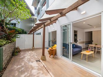 У отеля оказалась огромная территория, мы не ожидали (думали просто здание и бассейн рядом). А оказалось, что номера расположены по всей территории Boat Lagoon, и ехать к ним надо на гольф-каре. Это оказалось очень далеко от основного здания и бассейна. Я была с ребенком и попросила поменять номер на поближе, оказалось, что они и стоят дороже. Девушка на ресепшн пошла навстречу и поменяла номер, т.к.были свободные, за что ей огромное спасибо. К отелю нельзя подъехать на скутере. Для скутеров отдельная парковка на въезде (метров 300 от входа). В округе дорогие и странные рестораны.