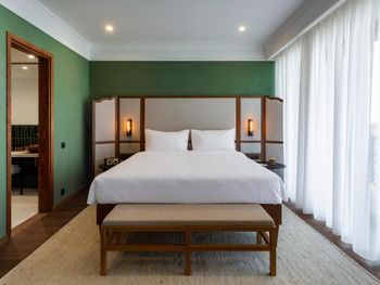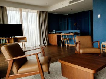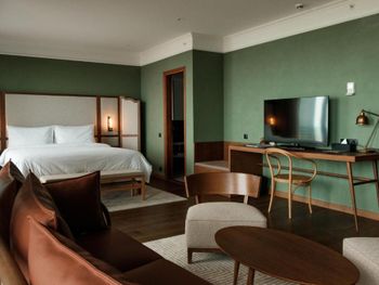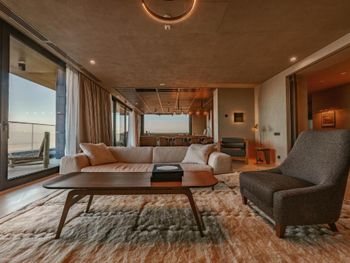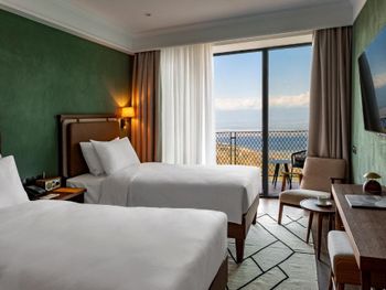 Отель вроде бы недавно открылся и одновременно достраивается и уже разваливается - стены в лифтах ободранные, полы и стены в разводах от краски и штукатурки, розетки вываливаются из стен, крепеж лейки в душевой болтается, в лобби из двух киев на бильярде один сломан. Указано, что номера 30 метров, - ложь, в лучшем случае 18м и это с балконом. Номера мрачные, перегородки на балконах сквозные, на балконах всю ночь горят неотключаемые светильники, для приватности и сна нужно закрывать blackout шторы. Номера по факту некурящие, но на балконах пепельницы и дым от курящих соседей заносит в номер. Иногда выясняется, что курят не только сигареты. В номерах в спа-крыле шум от наружных систем вентиляции. Номера с видом на Сигнахи находятся над террасой ресторана, где гости тоже курят. Бассейн то подогревается до 30, то остывает до 24, хаммам не работал, назначение остальных помещений в спа осталось непонятным, так как они тоже не работали. Сервис и еда в ресторане примерно такие же как приветственное сообщение о заезде, пришедшее два дня спустя.