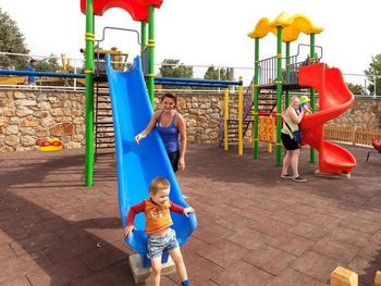 С детской коляской тяжело, так как нету спусков и лифтов