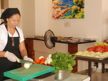 Ресторан при отеле замечательный, готовят вкусно, приветливые официанты, цены отличные. Горничные хорошо убирали номер, русскоговорящий администратор большой профессионал своего, возникающие вопросы решены были оперативно. Бассейн идеальный