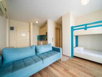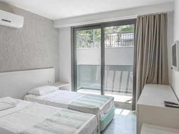Плохо закрываются балконные двери, платные сейф и интернет. Небольшой ассортимент на завтрак, но вкусно. В сентябре надо уточнять про фестивали проходящие рядом с отелем, очень громко слышно музыку в течении дня. Но персонал идёт на встречу, при наличии свободных номер переселяют. Пляж который находится рядом с отелем не подходит для купания, мутная вода и колючее дно.