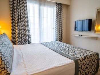 Стильные номера курортного отеля Bodrum Beach со вкусом оформлены в современном стиле. Они оснащены ЖК-телевизором со спутниковыми каналами, мини-баром и сейфом. Предоставляется бесплатный Wi-Fi.