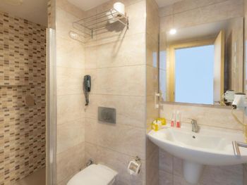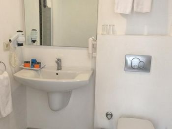 Отель довольно уставший. Мы бронировали номер с 1 большой кроватью, нам дали номер, где были еще 2 -х кровати для детей, что занимало много места в номере и было не нужно, при это некуда было деть вещи, т к шкаф отсутствовал, а в нише для вещей места для 2-х не хватало. В туалетной комнате держатель для бумаги постоянно отваливался, все тумблеры на гелях для душа и шампуне так же отпадали при первом же прикосновении. Отсутствуют крючки для полотенец.