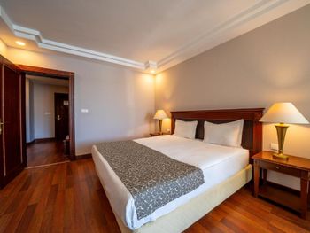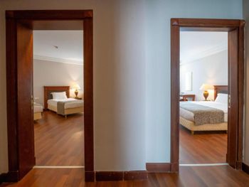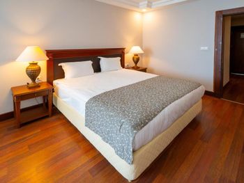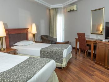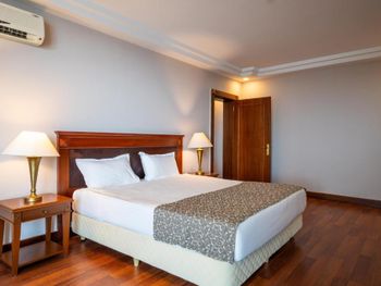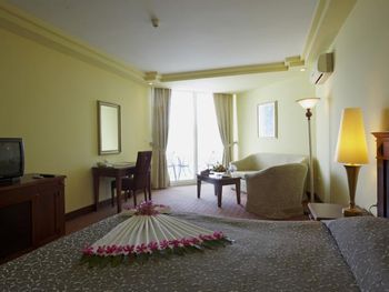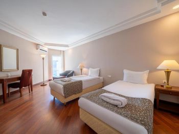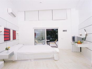Номера курортного спа-отеля Bodrum Holiday в мягких тонах оформлены в элегантном стиле.