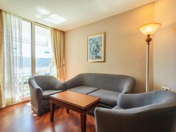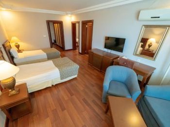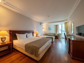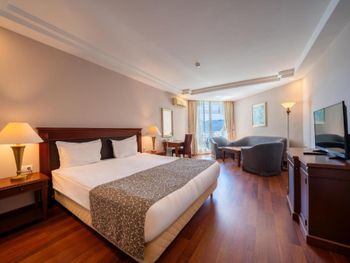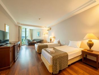 Просторный номер. Ухоженная чистая территория, бассейны, пирс, море. Приветливый персонал, особенно в ресторане. Кухня очень вкусная.