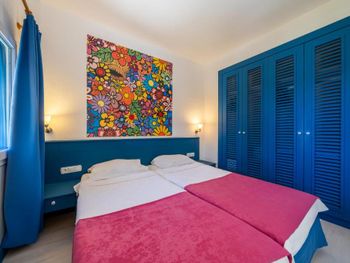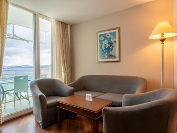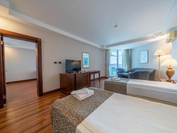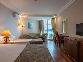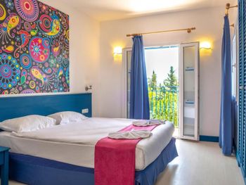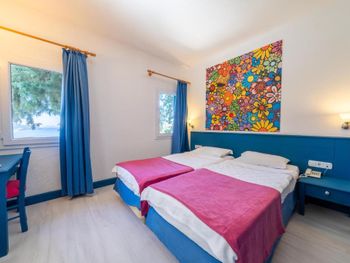 Не смотря на конец сентября, были большие очереди в столовой. Можно стоять 15 мин, чтобы просто набрать салат. В этой же очереди сыр или например мед. То есть если в конце обеда вы захотите взять только мед для чая, вам нужно будет вновь отстоять очередь. Персонал в столовой очень вялый и медленный ( Боюсь представить, что творится в середине лета. Алкоголь как будто разбавленный. Вино отвратительное на вкус. После двух джин тоников, можно остаться трезвым. Только пиво норм. Вай фая в номере не было вообще. Только в общественных зонах. Дали номер на самой горе. Пока спустишься/поднимешься на пляж, как будто сделал марш бросок. Для людей в возрасте будет проблематично. Лежанок у моря тоже не хватает. Все нагор кидают полотенца на них и идут на завтрак. Если спустился к пляжу после 10 утра, будь готов лежать где попало.