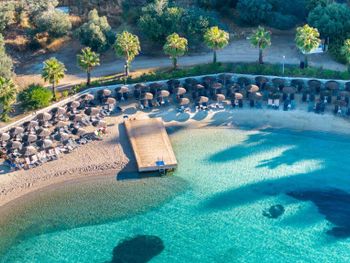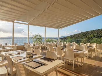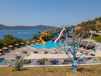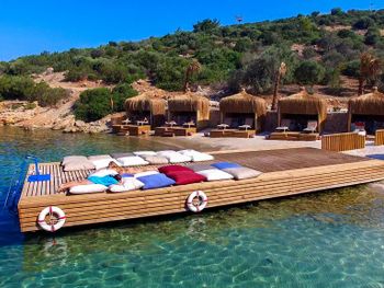 Отличное расположение ,как бы в бухте. Вид на острова в дымке морской просто чудесный. Море шикарное, без волн из-за того, что окружено островами. Очень отзывчивый персонал!!! Нам удалось пожить в «греческом домике» и в главном здании. Оба размещения отличные!!! Еда вкусная, разнообразие огромное! Все эти негативные отзывы непонятно откуда. Номер у нас отличный, всем требованиям отвечал. Снэк бары, пул бары и тд вполне себе удовлетворительные для перекуса и коктейльчика. На каждом шагу вода в холодильнике. Все вообще очень комфортно и продумано до мелочей. В номере чисто. Регулярно менялись полотенца, постель меняли. Пляж с лежаками удобный, заход в море комфортный, как и все побережье Бодрума - камень+песок. Рекомендуем взять специальную обувь для купания ! Без нее можно, но в ней комфортнее. На территории отеля есть магазинчик со всякой всячиной. А еще рекомендуем взять с собой мини аптечку, потому что даже антигистаминное от аллергии не выдали в отеле, отправляли в госпиталь. Но в целом это не минус, просто рекомендация отдыхающим! Но самый главный плюс- это природа, пляж и гостеприимство отеля.