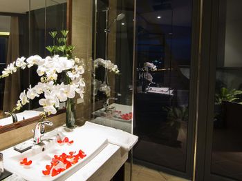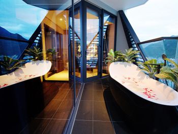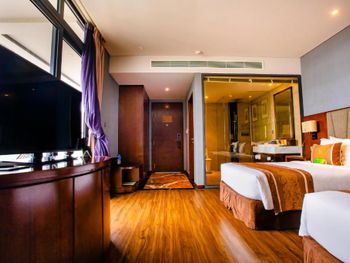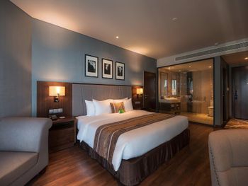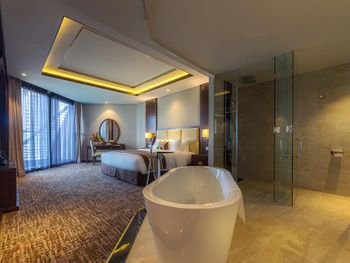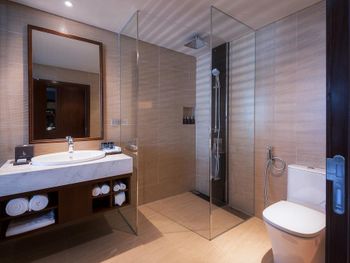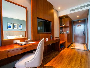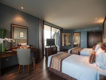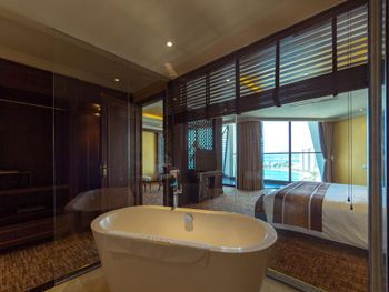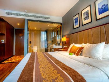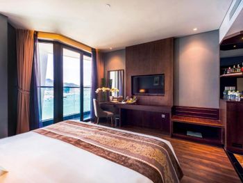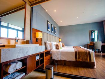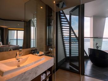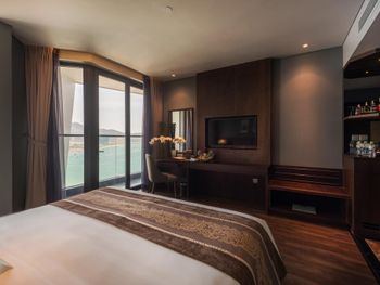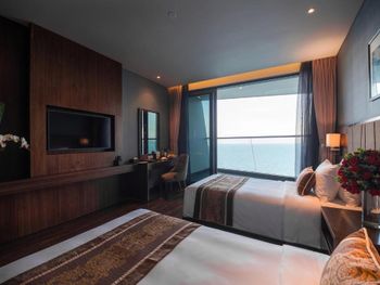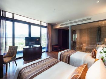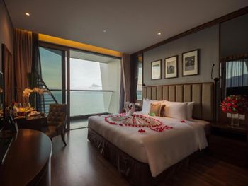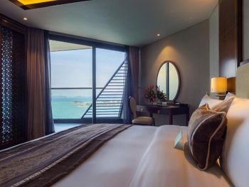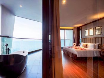 Приятный вид на море, особенно встречать рассвет - незабываемо! Радушные работники на ресепшен, довольно приветливые в ресторане. Ванна на балконе просто фантастическая! Комплимент от отеля в виде пекинской утки просто замечательно! Также приветственная корзина фруктов, комплиментарный 15- минутный массаж (по выбору или голова или ноги). Совет: выбирайте ноги! Массаж головы - совсем на троечку... Ходит бесплатный шаттл в центр по расписанию.
