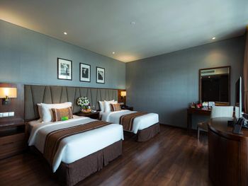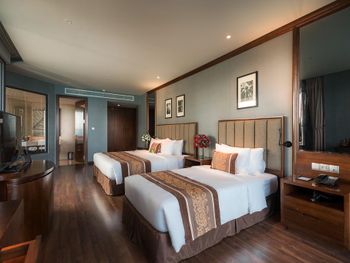 Цена не соответствует этому отелю, так как обслуживание как таковое отсутствует, особенно удивила сауна, которая в отелях такого класса входит в стоимость, но тут порядка 15 долларов с человека, это слишком, при том что она постоянно выключалась, в итоге мы ушли) большая часть персонала не говорит ни на каком языке кроме Вьетнамского, мне кажется что подбор сотрудников должен быть тщательнее, знание английского должно быть, ведь они общаются с туристами. Очень холодный бассейн, поплавать не удастся с комфортом, и все было бы ничего, так как рядом можно согреться в сауне, но она платная и стоит не дёшево)