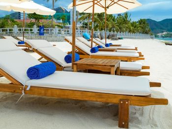 -до пляжа отеля пешком минут 15, солнце в тени там уже к 12 дня, полотенца нужно сдавать там же до 4 дня, что очень неудобно, когда берёшь полотенце, чтобы уйти на солнечную сторону пляжа и хочешь остаться часов до 5 там...приходилось возвращаться и идти в отель, либо брать платные лежаки с полотенцами у частников -находится на севере Нячанга, где процветает воровство. У нас чуть не вырвали телефон с рук, удержали. При нас обокрали 2 пары за два дня. Будьте внимательны, в центре такого нет -на огороженной территории пляжа есть лежаки 2 типов: от отеля и частные. На частных толстые синие матрацы, от отеля в 2 раза тоньше ужасно грязные белые. Не приятно. -трансфер от отеля на пляж- маленький гольф кар на 6 человек) может просто не приехать по расписанию -вода в бассейне просто ледяная! Купаются только китайские туристы ради фоток.