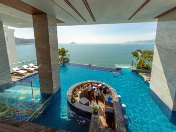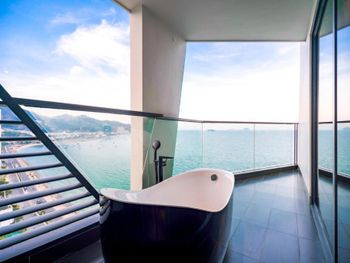 Нельзя сказать, что отель очень плохой. Но на букинге у него рейтинг невероятно высокий. Такой рейтинг предполагает, что там должно быть потрясающе. Это не так. Да и даже на 5-ку не по всем параметрам тянет. Например лобби не 5 звёзд. Даже двери тебе никто не открывает. 1. Хороший вид из номера, мы жили в номере премьер на 18 этаже. Это первая линия, поэтому хороший вид должен быть и в других номерах. 2. Завтрак хороший, о опять таки не вау, как некоторые пишут. 3. Бассейн хороший с видом, достаточно глубокий 1,6 м. Не холодный как пишут в отзывах. Это 4-й бассейн на крыше Нячанга, где я был. И было холоднее.