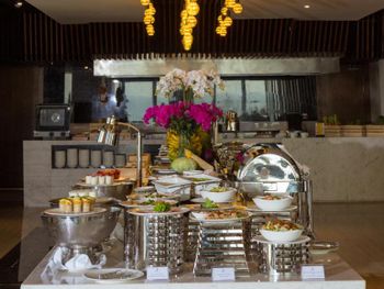 По утрам гостям подают завтрак «шведский стол» с блюдами западной и азиатской кухни. В 3 ресторанах отеля на обед и ужин можно заказать блюда по меню, по выходным также сервируется «шведский стол». В баре у бассейна представлен широкий ассортимент тропических напитков и освежающих коктейлей.