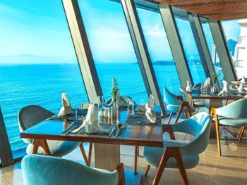 Несмотря на высокую цену, не могу назвать отель «пятеркой». Отель стоит прямо на дороге, далеко от центра и инфраструктуры. Отдельного подъезда к нему нет. С одной стороны стройка, с другой лачуги. Выглядит, как захудалая тройка, да и райончик убогий. Подраная красная дорожка при входе, рецепция напоминает вокзал с каменными скамейками. В номерах шумно, из-за того что дорога совсем рядом. В шесть утра в здании напротив очень громко заработал кондей, в самом же номере работал еле-еле. Пришлось съехать. Номер дали такой же, только на 10 этажей ниже. Стало тише, но шум с дороги остался. Изоляция плохая. Брал номер «Sea View», но получил «Another Building View». Море было видно, но процентов на 30 от всего вида. Есть балкон, но он ничем не оборудован. Кинули только на пол пепельницу со спичками и все. Номера с неаккуратным ремонтом. В туалете был подраный потолок, открытая душевая кабинка, вода из которой выливалась по всей ванной комнате и текла не в тот сток, который ей был уготован, а к унитазу. Ванной не оказалось. Хоть при бронировании я вводил в фильтры, что нужен свой пляж - его не было. Напротив отеля набережная, где купаться нельзя. Ближайший городской пляж в полукилометре. В карточке гостя написано, что идет шатл, но когда в первый день я спустился ко времени и спросил где автобус, мне было сказано, что его не будет, т.к. «Все пляжи города закрыты из-за непогоды». Как понимаете, пляжи все были, конечно, открыты. В чем я убедился, когда дошел туда пешком. На нем красовались зонтики с названиями отелей, среди которых Boton Blue не значился. Решил сходить в местный спа в отеле. При заезде дали два сертификата на массаж. Сходил на массаж ног и головы (по 15 минут сертификаты). Сделали очень неплохо и записался на Шведский (убедило слово «сильный» в буклете). В итоге за цену в пять раз дороже, чем в обычной массажной получил легкое поглаживание по спине и те же два массажа головы и ног, которые умеют. Это было плохо. Больше сюда не ногой.