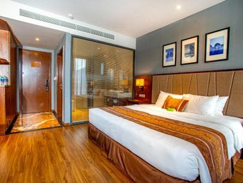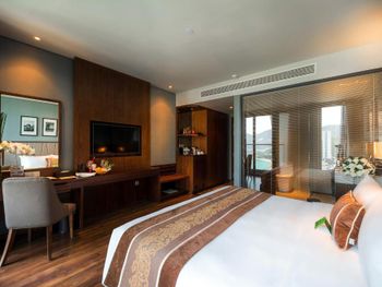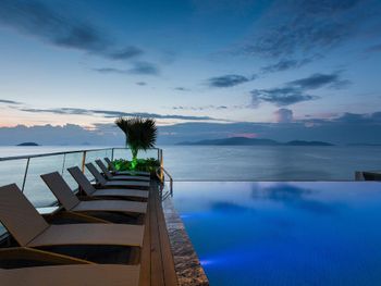 1. В номере было грязно, убираются для галочки. На балконе стеклянные перегородки, они очень грязные, их протирали год назад. Из-за этого вид из номера, конечно, значительно хуже, чем он есть на самом деле; плюс убогие наклейки «не прислоняйтесь» зачем-то размещены по центру. 2. Пляж расположен в 5 минутах езды по дороге (Северный пляж Нячанга). Трансфер от отеля бесплатный, но ходит раз в час. Это неудобно. При том это маленький кэб. Если перед Вами больше 1 семьи, придётся ждать очереди. На пляже отель выкупил несколько лежаков. Они бесплатны для гостей. Но это самые убогие лежаки на данном пляже. Лежаки за деньги и лежаки других отелей лучше (матрас толще). Обслуживания на пляже НЕТ. И сами лежаки размещены в месте, где купаться опасно - в отлив острые камни на дне. Все купаются чуть левее, там отлично. 3. Персонал не улыбчив, суров, поможет, но не по своей инициативе. 4. Отель переполнен гостями из Китая. Постоянные заезды/выезды. На лифте можно останавливаться 10 раз на каждом этаже. И все будут заходить и заходить )) На завтраке очереди из гостей в 6-30 утра, все столы с видом занимаются ) учитывая эпидемиологическую ситуацию - напряжно. Никакого расслабления здесь нет. Итого: учитывая стоимость размещения не вижу смысла. На курорте есть отели лучше за куда меньшие деньги. А как можно было набрать такой рейтинг не представляю...