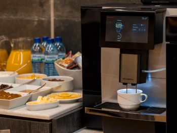 Доброжнлательный персонал на ресепшен, каждый день бесплатная бутылка воды, ванные принадлежности. Кофемашина, фрукты на завтрак, омлет, гречка, творог, йогурт, бесплатное парковочное место при наличии возможности.