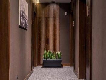 - В коридорах темно, приглушенный свет. Номера в темных тонах. Больше похоже на отель для "одной ночи", а не для туристов.
