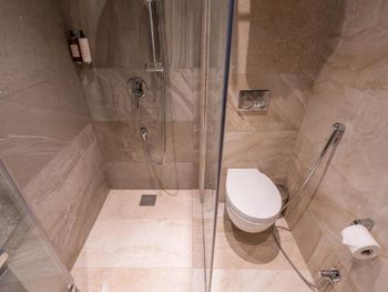 + В номере есть все необходимое: чайник, вода, сейф, столик для чемодана, фен, и т. д. Есть гигиенический душ в туалете.