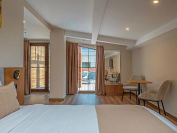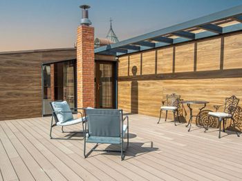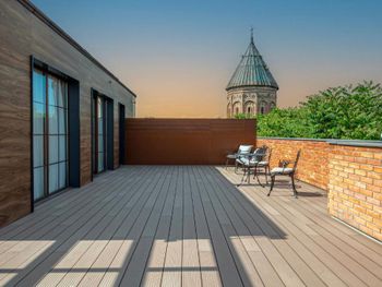 У нас был номер с террасой , взяли для того, что бы отдыхать на ней от суеты и наслаждаться видами. В день заезда на терассе был сломанный , старый стул , потом оказалось это стул рабочих. Так он и стоял два дня. Сидишь в полотенце на веранде , со служебного входа заходят техники и начинают что то сверлить ? т.е. терасса как бы и твоя, но не твоя, ибо к ней есть доступ из всех номеров. К концу проживанию веранду облагородили новой мебелью, жаль мы уже уезжали.