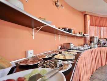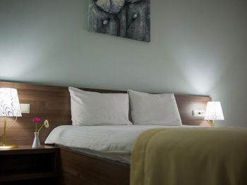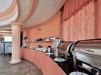 В данном отеле были очень невкусные и всегда холодные завтраки.Яичница просто как холодный блин.Непонятно почему нельзя было жарить омлет или яичницу каждому клиенту как делают везде .Кроме того растворимый кофе в отеле 4 звезды недопустим.Везде стоят кофемашины и люди сами себе готовят кофе. Т.е в данном отеле не надо платить за завтраки лучше ходить в кафе как мы и сделали.Завтраали в отеле "Адмирал". Там прекрасные очень вкусные и горячие четыре вида завтрака на выбор. Еще один недостаток очень шумные ночи.Окна выходили во внутренний двор там был бал гости и машины галдели и шумели до часу ночи.