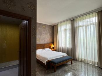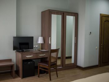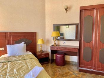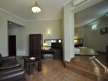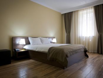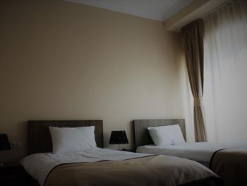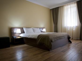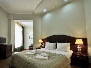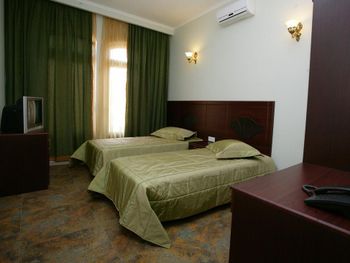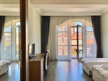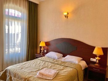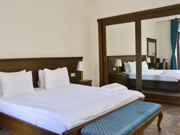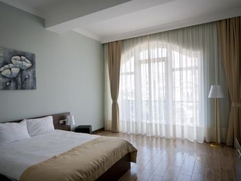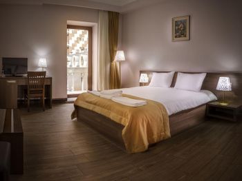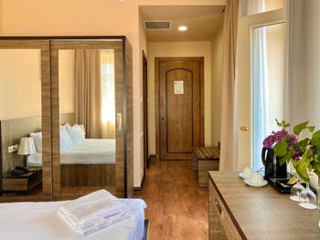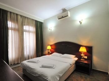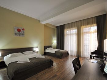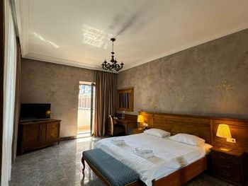 Когда приехали и зашли в номер, то первое, что встретили - это трещины в штукатурке, куски отваливаются. В туалете на потолке чёрные пятна, в углах туалета тоже. В самой ванной комнате пахнет канализацией и сыростью. Сантехника очень уставшая. В самый последний день перед выездом проснулись и не было холодной воды. Замочная скважина на входной двери раздолбана, из-за чего ключ провернуть или достать порой просто невозможно. За 7 дней проживания в отеле ни разу не поменяли постельное бельё. Завтраки вообще поразили в плохом смысле. На завтрак взяли яйца, которые были тухлыми. Кофе предлагают растворимый, что очень забавно Если вы туда едете, то точно не надо брать завтраки, тк они их предлагают за 60 лари. За эти деньги можно покушать хорошо в ресторане. Розеток в номере очень мало. Либо ты заряжаешь телефон, либо горит светильник. Освещения крайне не хватает в номере