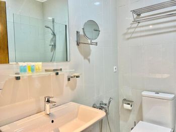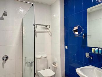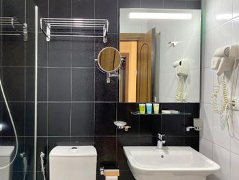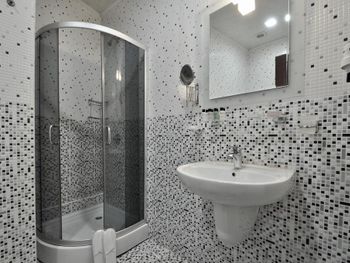 Из-за высокой влажности углы душевой и потолок над ней покрыт чёрной плесенью. Не знаю пытались ли как то бороться с этой проблемой, но поверхности к которым прикасалась прошлась антисептиком и это немного помогло. Из лобби бара нельзя заказать чай в номер или даже взять его в заварнике наверх самостоятельно, только идти вниз с чашкой из номера, цена 5 лари- это показалось странным.