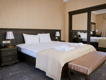 Заселили не в забронированный номер (с двумя комнатами (спальня+гостиная), а в обычный - это сильно испортило впечатление. После того, как мы показали фотографии изначально забронированного номера, согласились поменять. Уборку в номере без запроса не производят - надо звонить и просить. Горячую воду после 21 часа нужно ждать минут 10-15. Выбор продуктов на завтраках небольшой.