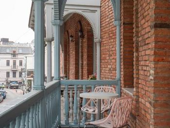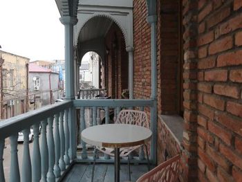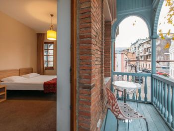 В тихом месте, в старом городе. Рядом много ресторанов с открытыми террасами, набережная, театр Резо Габриадзе. Окна и балкон выходят в небольшой сквер, по утрам поют птицы.