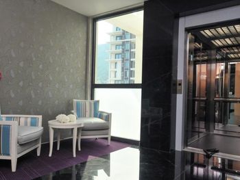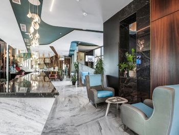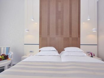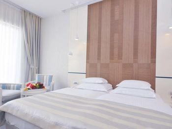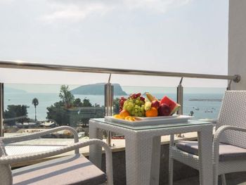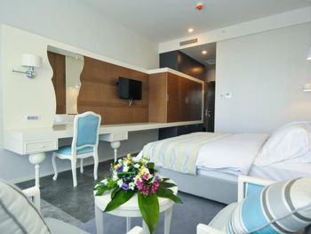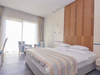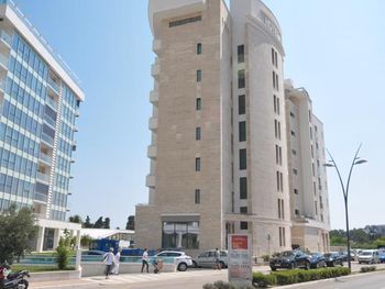 На этажах в коридоре очень душно, кондиционер не работает, нет бассейна и своей территории. Рядом с отелем находится крытый рынок и пустырь. На этом фоне отель выглядит не очень привлекательно. Не все номера с видом на море имеют красивый вид. Если взять номер на 1-3 этажах вместо красивого вида получите вид на помойку, пустырь и непонятное сооружение в котором находится вещевой рынок. За такие деньги можно найти отель с более удачным расположением, благоустроенной территорией и бассейном. Брали завтраки, особого восторга не вызвали.