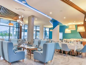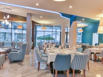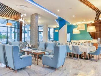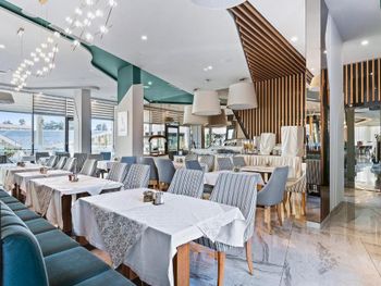 Вид на море в действительности оказался сильно боковым....т.е. надо было высунуться по пояс с балкона, чтоб увидеть море :( .СПА-зона - одно название...бассейн 2*3 ...мы жили на 6 этаже, прям под бассейном, слышимость потрясающая, жрчание и плеск воды...да, кстати бассейн и баня работали с 17 до 21. Завтрак не вкусный, вроде все есть, но как-то не очень. Яичницу испортить сложно, но вот была она как подошва, несъедобная и гадкий кофе, хотя выбор вполне приличный.