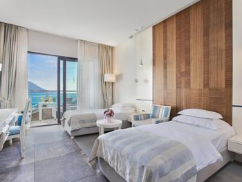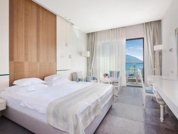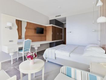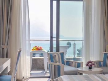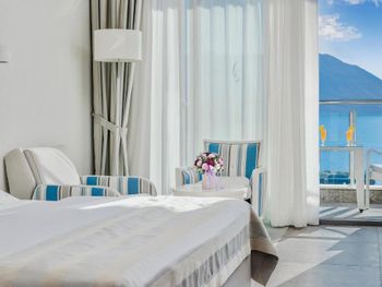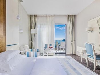 Чистый номер с минибаром, хорошей мебелью, удобной кроватью и видом на море. Завтрак вкусный