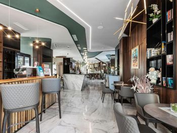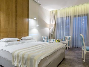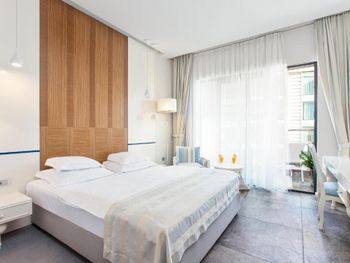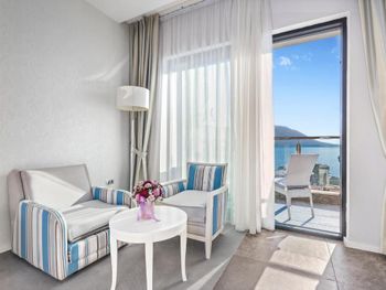 Минусов довольно много, вроде мелочи, а портят общее впечатление: - Расположение. Тут все его хвалят. Но. Вокруг стройка, И хотя мы доплатили за номер с видом на море, увы, в первую очередь под окнами видно было стройку и неработающий базар. До старой Будвы минут 15 пешком. - Оформление обеденной зоны. Первый раз столкнулась с тем, что питание осуществляется по сути в холле, просто место для завтрака/ужина отгорожено от ресепшн. Еще и пока завтракаешь, видишь потолок и стену, явно требующую ремонта... - Маленькие кружки для кофе, да еще и капучино наливается пол кружки... Если брать просто кофе и разбавлять холодным молоком, кофе мгновенно становится холодным, если разбавлять горячим - переливается за края.... Да и кажется, в кофе-машине используется сухое молоко... - Душ... Вода уходит плохо, так что с учетом того, что душ здесь выглядит как отгороженная стеклянной стенкой часть ванны, у вас все шансы залить пол в ванной. - Плохое мыло, едва мылится. - Спа-центр. Громко сказано. Сауна неплохая, но прохладная, Хамам в целом ок, бассейн очень маленький, не представляю какая толкотня здесь может быть в сезон. В самом отеле нет услуг массажа. Есть салон за углом, который выглядит убого, при этом, цены дороже, чем в Москве (хотя как я заметила, относительно других мест цены чуть дешевле). По описанию и отзыву в целом ожидала большего комфорта.