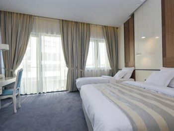 В целом, мы нормально провели там время, но если вы хотите получить удовольствие от пребывания в отеле, то этот вариант весьма средний. Плюсы: - Тепло! Для меня это был важный параметр при выборе отеля в зимнее время. - Парковка! Крытая, подземная, с которой лифт идет на этаж. - Интерьер комнаты. меня порадовало, что хватало места для вещей, кресла, столик, тумбочки, здесь все очень продумано и удобно. - Завтрак и ужин за такую цену вполне приемлемы. Фрукты на завтрак, причем, хороший выбор, порезанные и целые, что было приятной неожиданностью в зимнее время. - Рядом банк и довольно большой супермаркет.