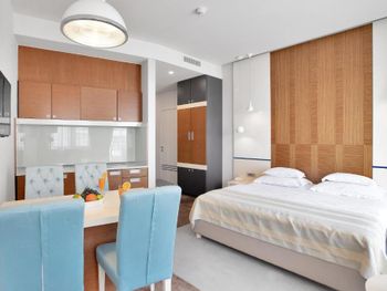Расположение очень хорошее, все близко и рядом. Уборка каждый день, очень хорошо убираются. И конечно плюсом бассеин, сауна и хамам. Завтраки тоже были прекрасные