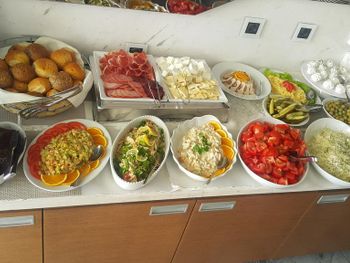 Завтраки. На твердую тройку. Особо выбрать нечего. И вид у продуктов - аппетита точно не вызывает. Нет полотенец для пляжа. Как и самого пляжа. Бассейн - ну мягко говоря, не для плавания. Находится на последнем этаже в закрытом помещении с низким потолком. Там душно и пахнет хлоркой