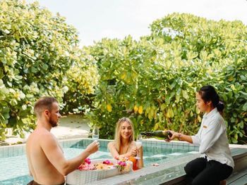Замечательные завтраки . Мальдивцы это те же Тайцы никуда не торопятся , на релаксе , Сабай Сабай . Забыли про мое др, хотя муж переписывался с ними , заказал оформление и напомнил утром по вотсапу . Приеду я еще в этот отель, нет . Очень далеко . Постельное за неделю не поменяли . На ресепшене тоже странные девушки работают . Мила вроде такое имя , все время пыталась обманывать . Это очень считывается . Прождали водный самолет 6 часов !!! Если все таки поедете в этот резорт уточняйте время ожидания , как туда , так и обратно .
