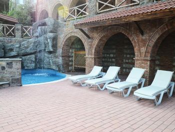 Выбрали этот недешевый отель из-за бассейна. Перед заездом отель подтвердил, что к нашему приезду бассейн будет открыт. Но нет, бассейн без воды. И никакой скидки, ничего вообще, даже извинений. Только разговоры о том, как они только что открылись после ковид-простоя и какие у них проблемы. Но другие отели Грузии, где мы были, в такой же ситуации прекрасно работают. А здесь как будто не готовы. Во внутреннем дворе складирована мебель,в номере все пришлось просить. Номер брали самый дорогой - семейный люкс. Фото нет, думала, он самый комфортный. В номере: спальня без окон и кухня-гостиная. Но кухня - скорее декорация, мебели много, но нет даже микроволновки. Есть несколько чашек и тарелок. За бокалами, штопором, мусорным ведром, включить освещение на улице и т.д. пришлось бегать на ресепшн. Сейф не работал. Разогреть утром нашу еду в микроволновке не удалось, у них микроволновки нет.