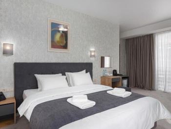 - номер бронировали на 2 взрослых и 2 детей, но в номере было все для двоих человек, не считая застеленного дополнительного миниатюрного дивана, на котором два ребенка комфортно не поместятся. только два набора тапок, две кружки, мало полотенец, 4ой подушки не было. по запросу выдали тапки и третью зубную щетку