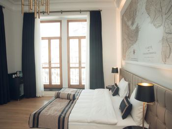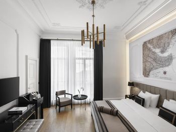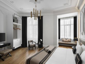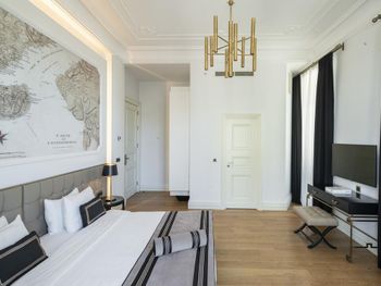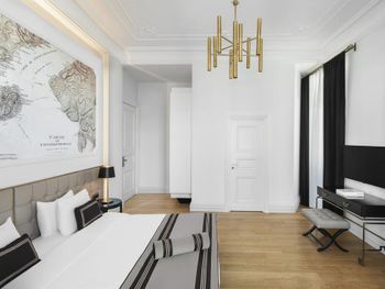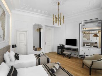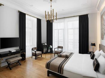 Девушки на стойке регистрации очень приветливы. Отель красивый. В номерах высокие потолки и стильные люстры. Фотографии соответствуют действительности. В сейфе помещается ноутбук. Рядом метро и множество магазинов и кафе.